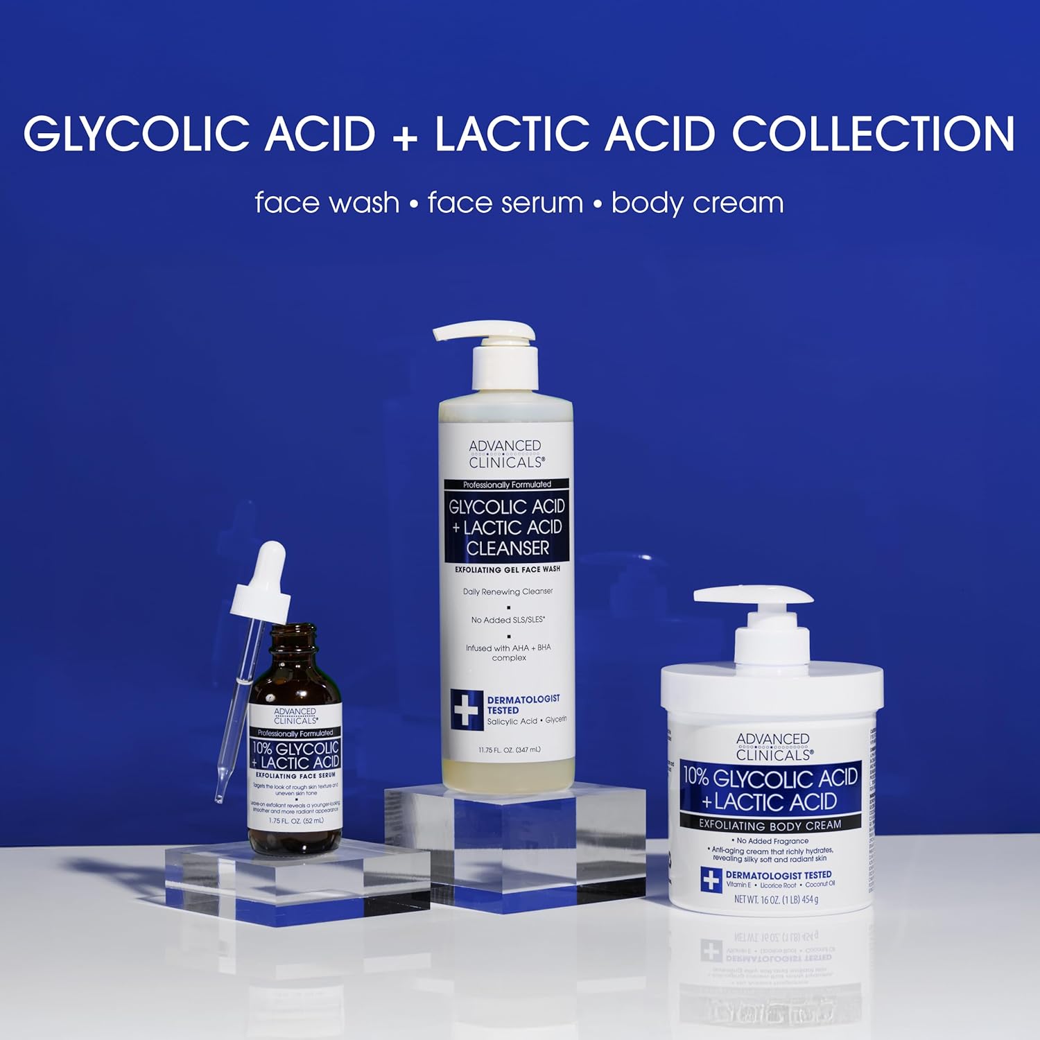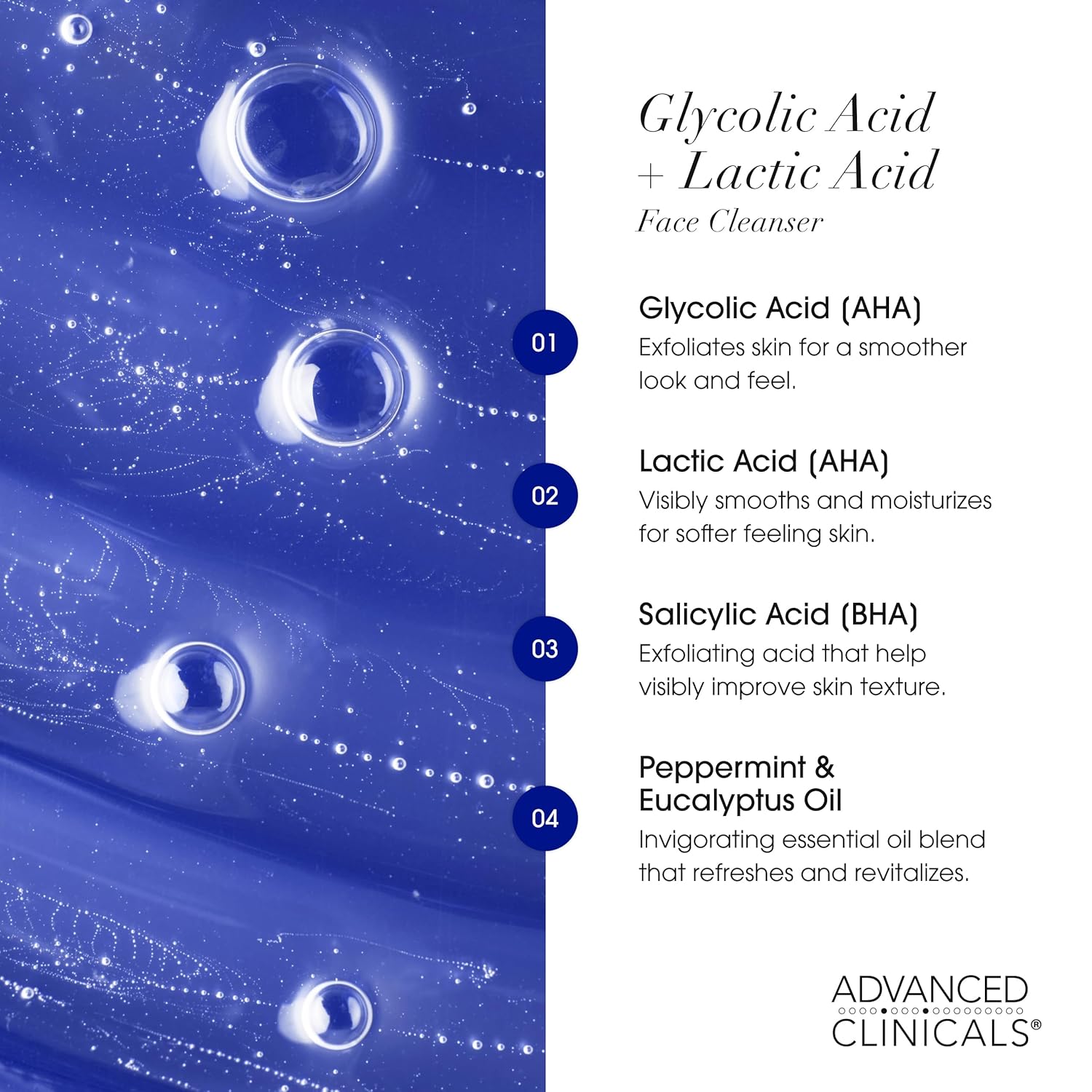 Advanced Clinicals Glycolic Acid + Lactic Acid Cleanser – Exfoliërende Gezichtsreiniger – 347ml
