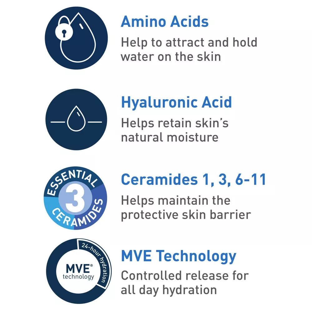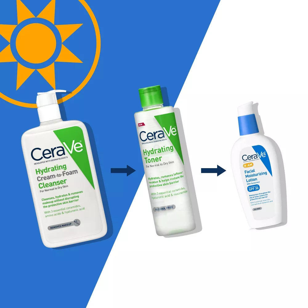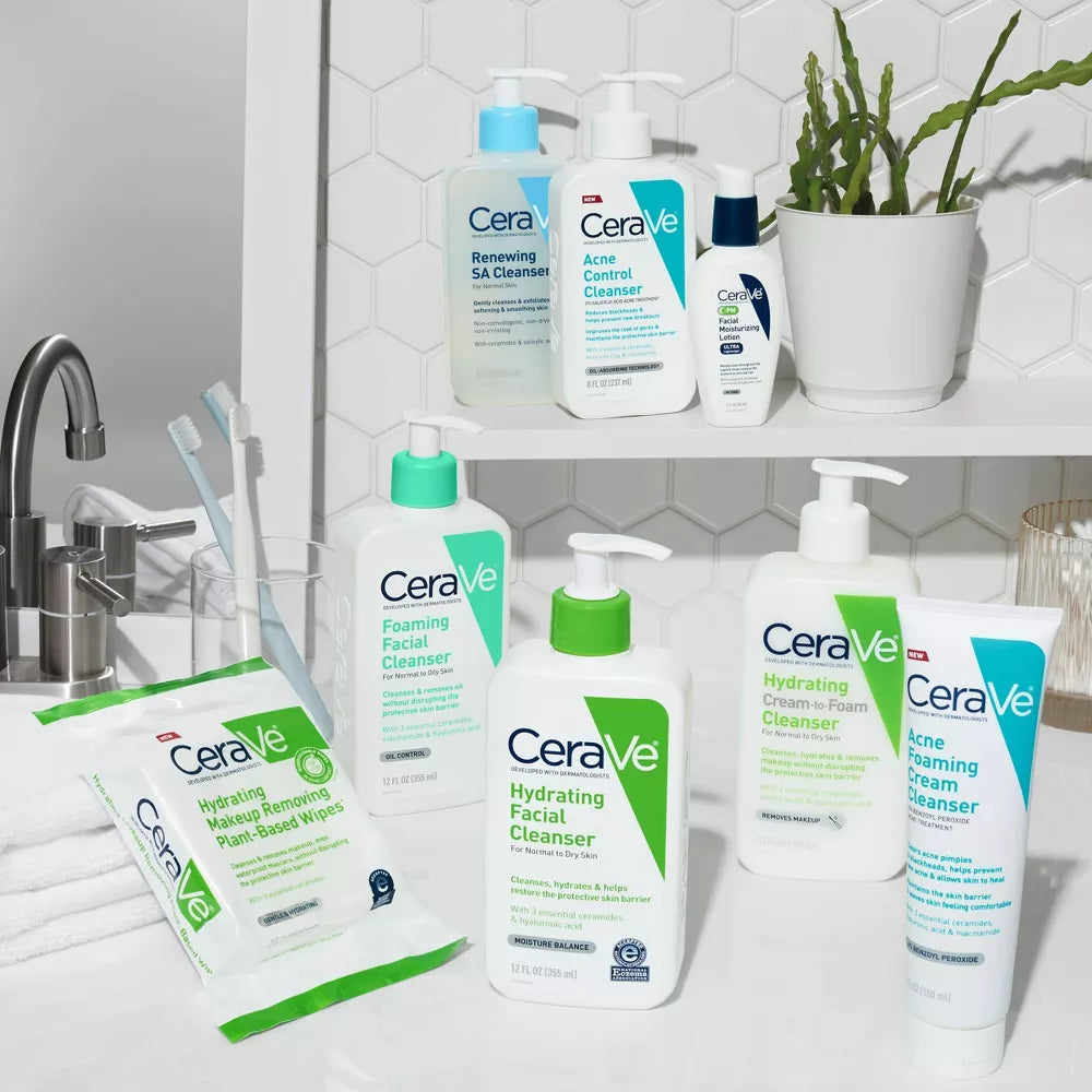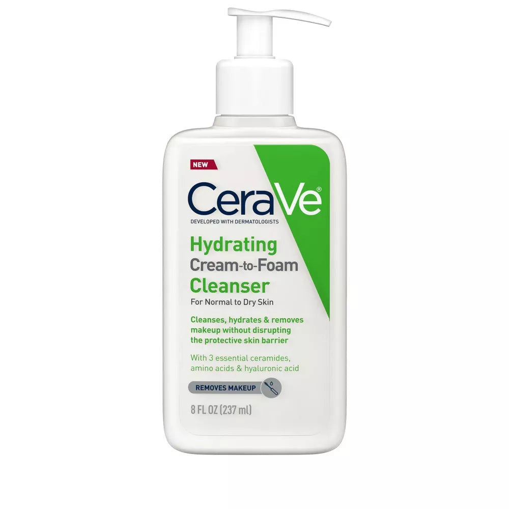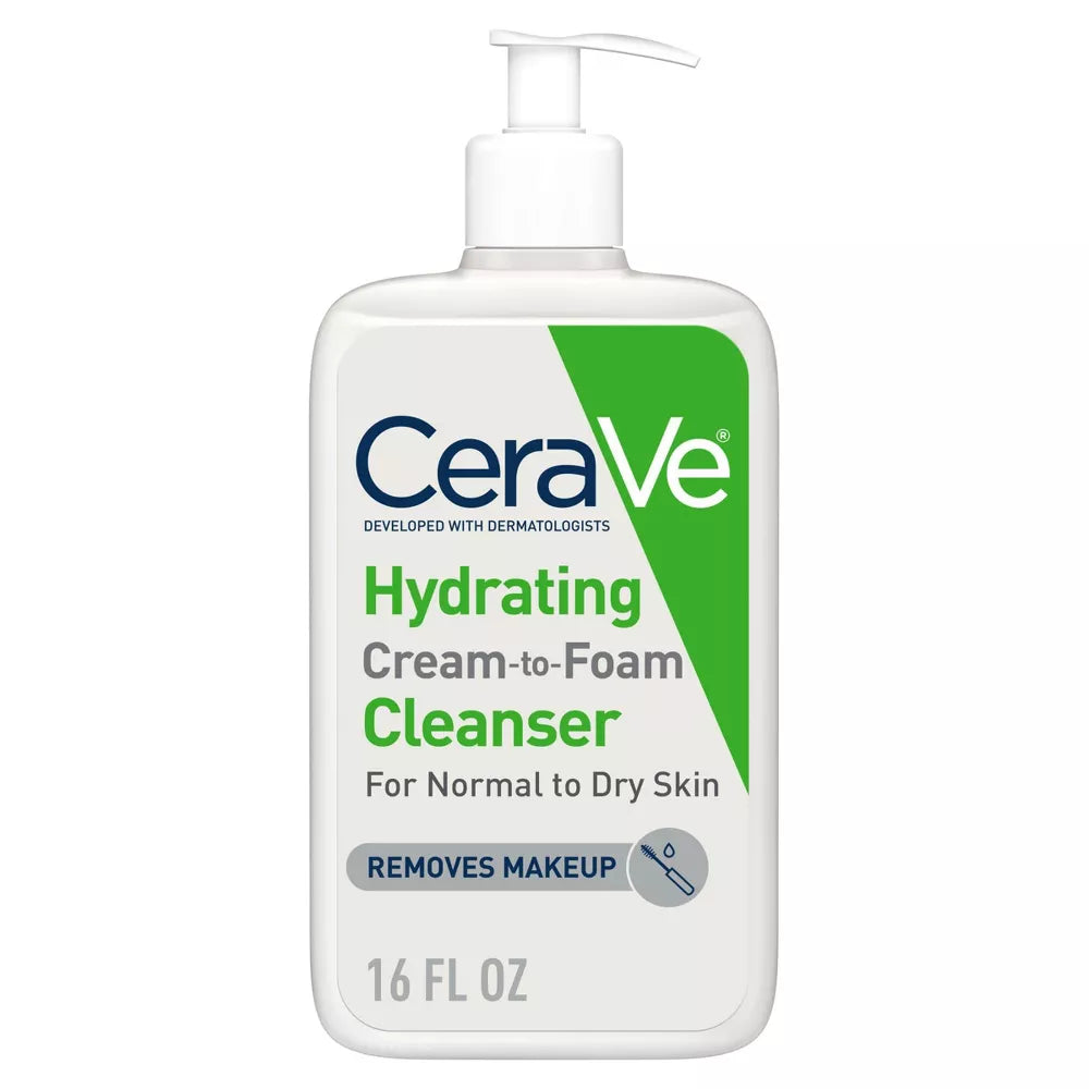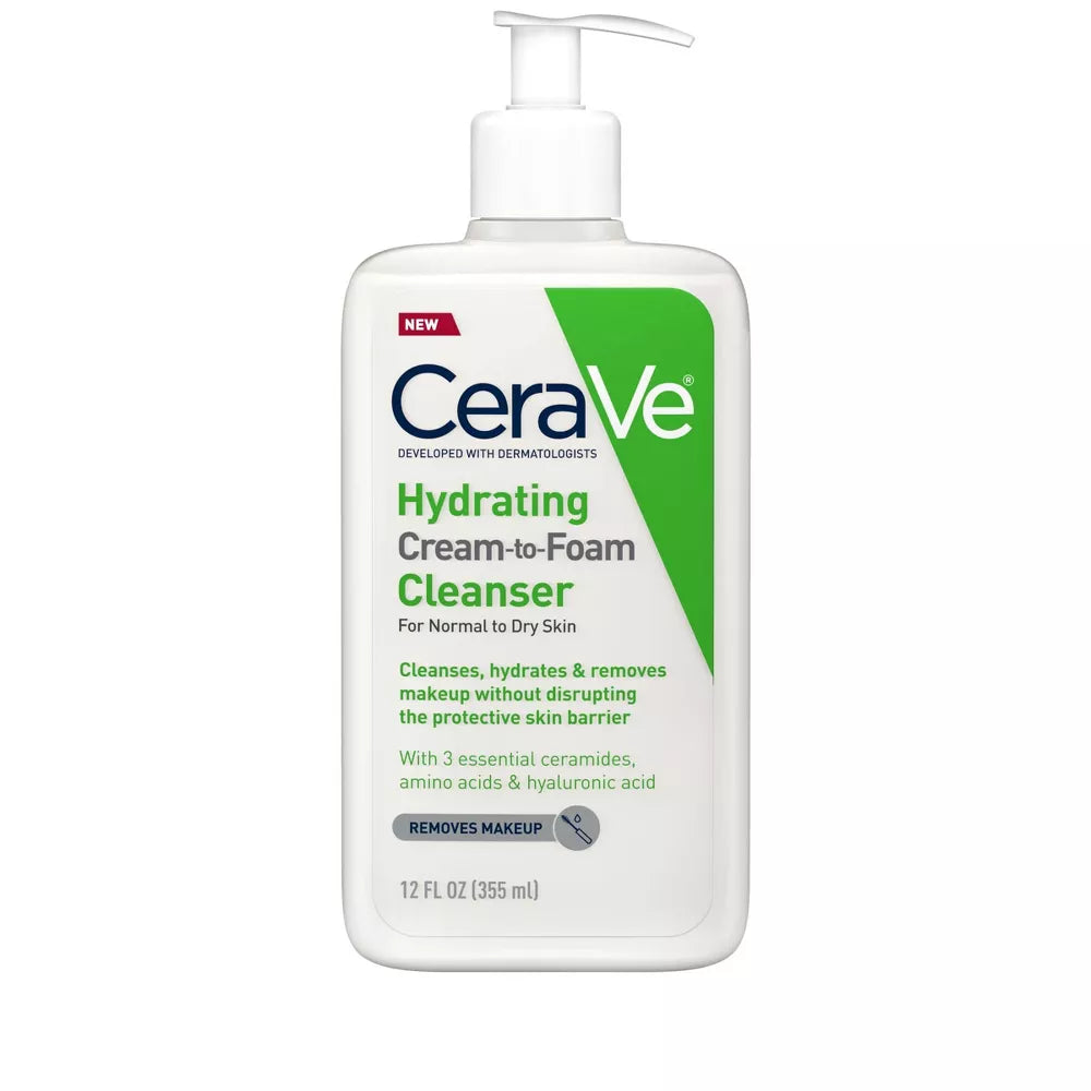 De CeraVe Hydrating Cream-to-Foam Cleanser is een milde, schuimende reiniger voor de normale tot droge huid. Verrijkt met drie essentiële ceramiden, aminozuren en hyaluronzuur, verwijdert deze cleanser make-up, vuil en overtollige olie effectief, terwijl de huid gehydrateerd blijft en de natuurlijke huidbarrière wordt hersteld. Inhoud: 355 ml.