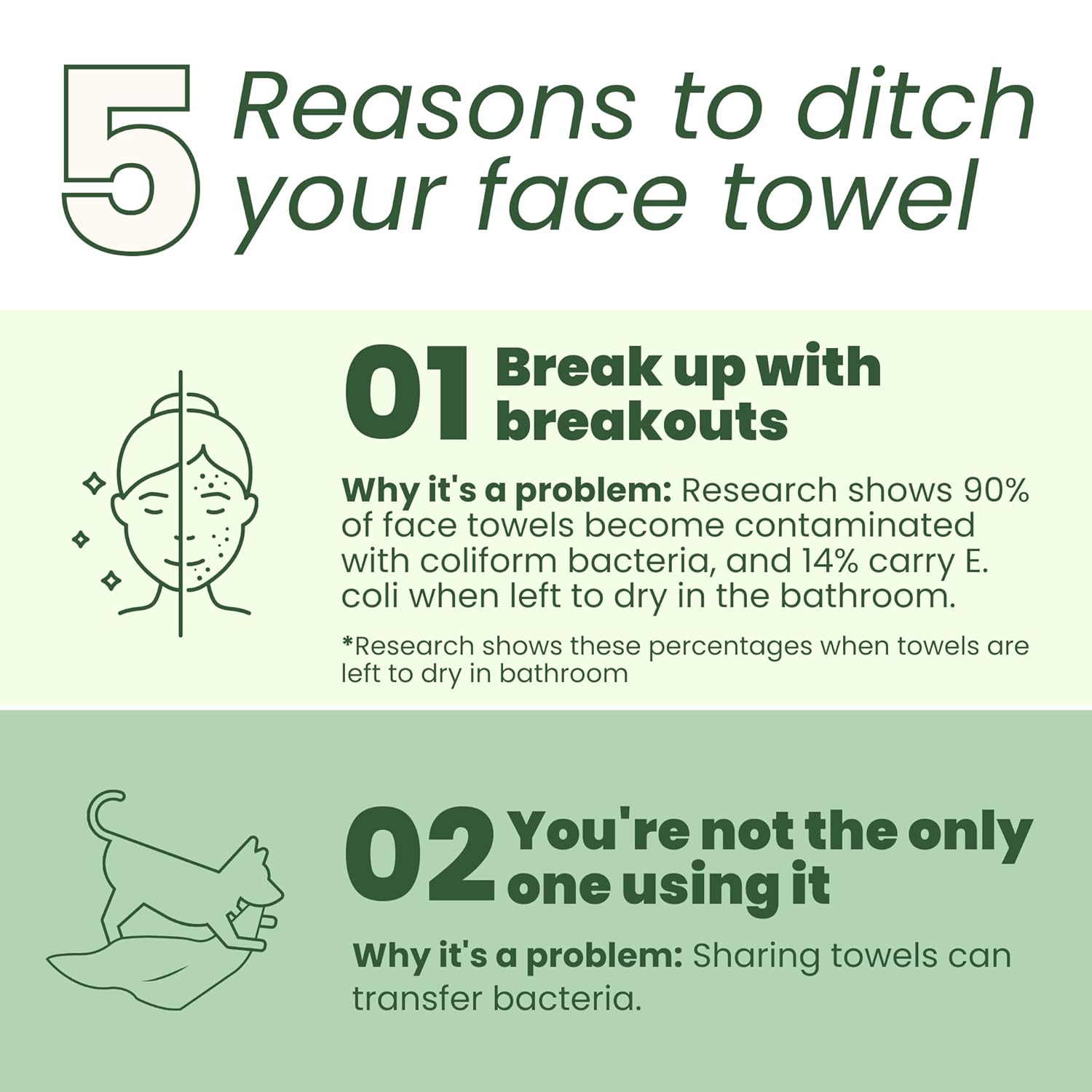 Zeg nee tegen bacteriën – Wist je dat gewone handdoeken zelfs na één keer gebruik bacteriën verzamelen? Ze dragen ook dode huidcellen en kunnen virussen verspreiden.