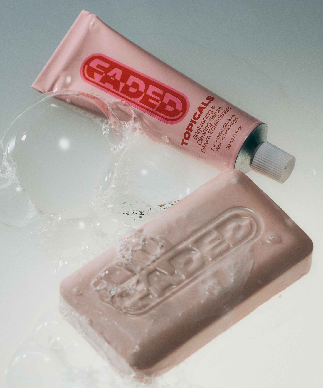 De ultieme routine tegen donkere vlekken voor een egale, gladde huid – zoals gezien bij je favorieten tijdens onze brand trip naar Bermuda. Deze set bevat ons bestverkochte Faded Serum (Unscented 30ml), de Faded Under 6 Eye Masks en onze nieuwe Faded Brightening + 2 Cleansing Bar.