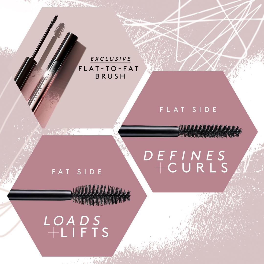 Pro-tip: Gebruik de binnenste golf van de dubbelzijdige borstel om volume op te bouwen en hoe langer borstelharen om de wimpers te verlengen en te definiëren. Verwijderen met een zacht reinigingsmiddel en water.