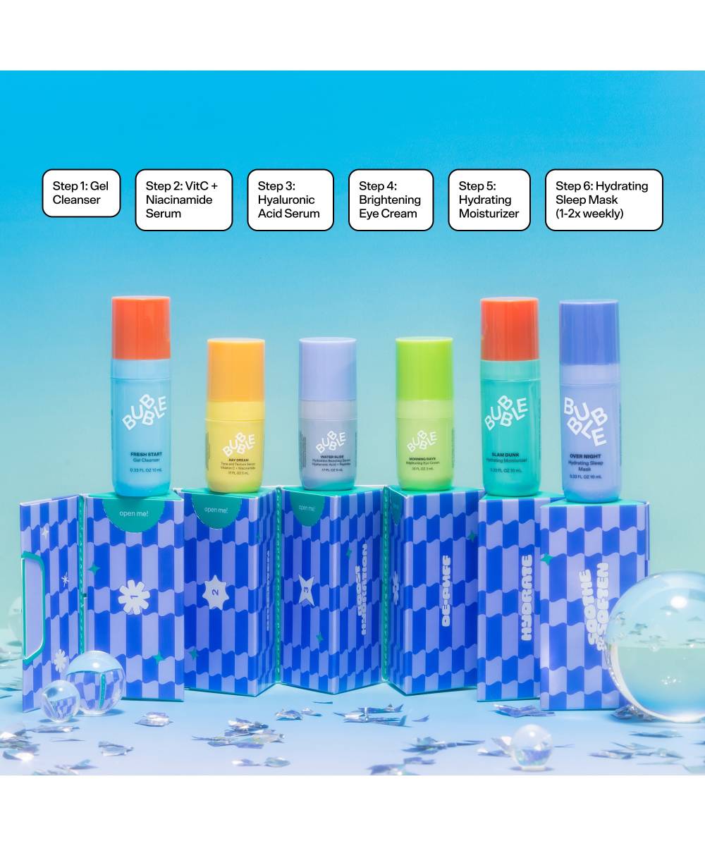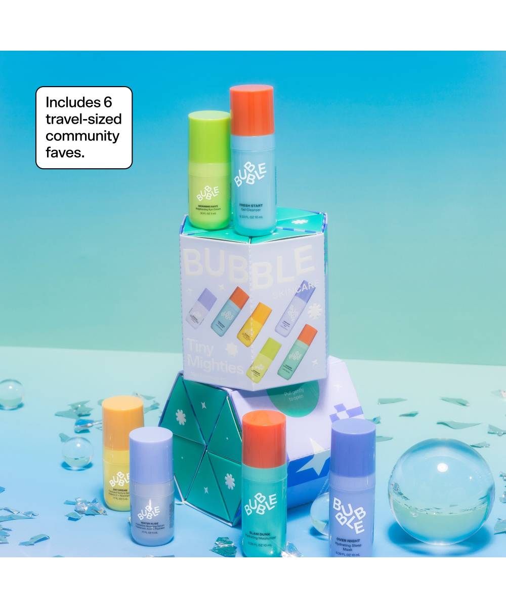 De Bubble Skincare Tiny Mighties Mini Essentials Set bevat mini’s van de populairste Bubble-producten voor een frisse, gehydrateerde huid. De set reinigt, verzorgt en hydrateert en is perfect voor onderweg, reizen of als cadeau.
