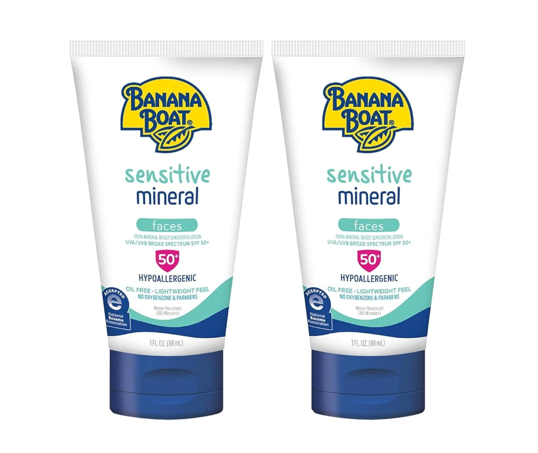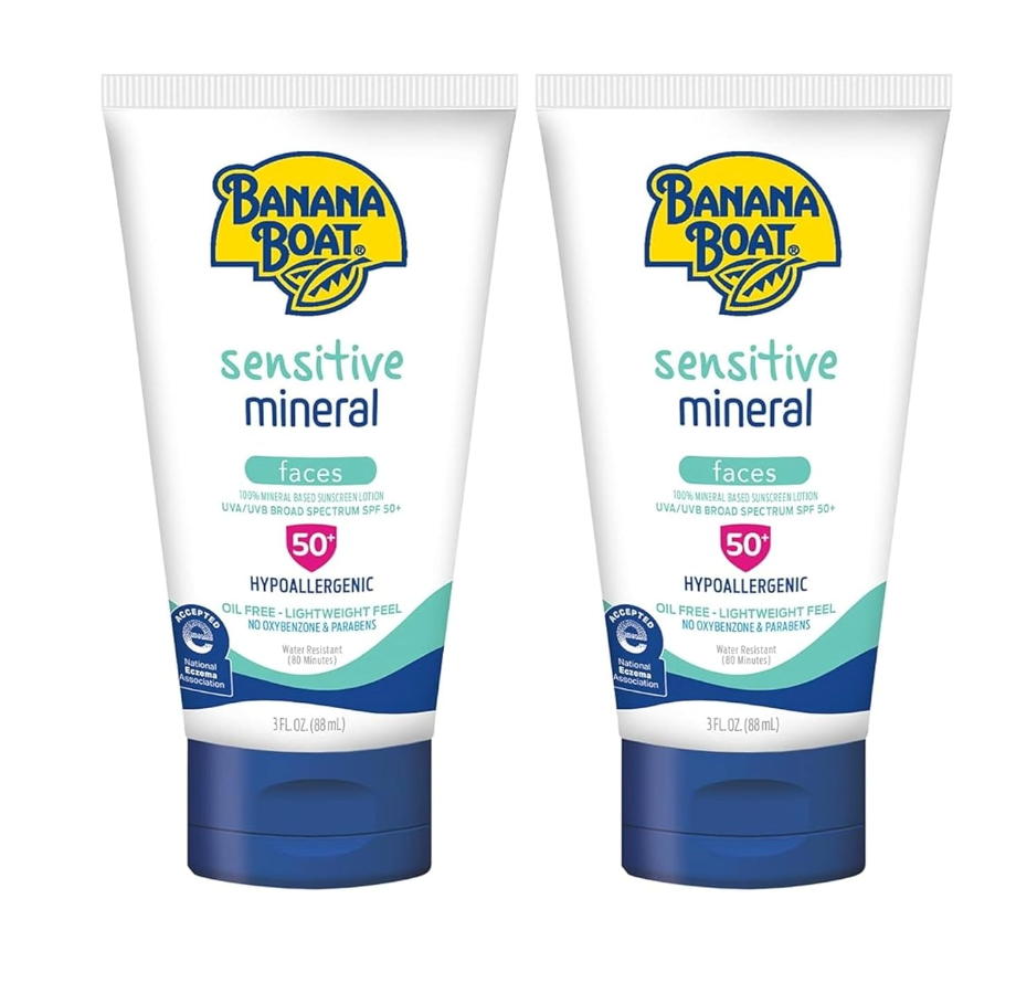 Banana Boat Sensitive 100% Mineral Face Lotion - Vrij van parfum - Hypoallergeen - Gezicht - SPF 50+