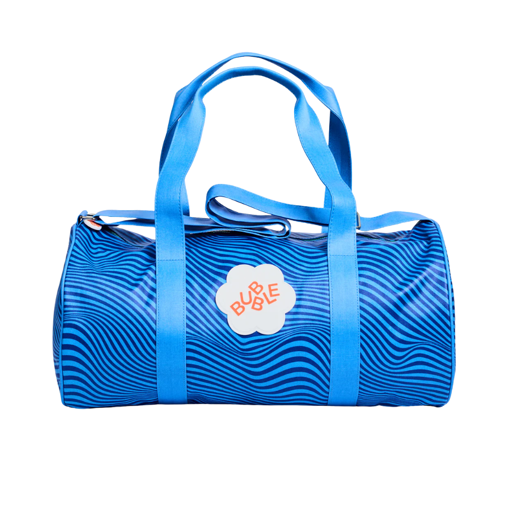 Bubble Skincare blue duffel bag. Praktische tas voor het opbergen en meenemen van skincare en persoonlijke verzorgingsproducten.