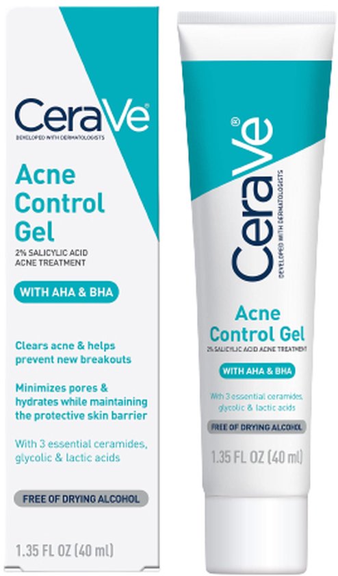 CeraVe Acne Control Gel is een hydraterende, dagelijkse behandeling voor acne met 2% salicylzuur die acne verhelpt en helpt nieuwe uitbraken te voorkomen. Het biedt ook milde exfoliatie met alfa- en bèta-hydroxyzuren (AHA en BHA) die de uitstraling van poriën verbeteren, gecombineerd met kalmerend niacinamide en ceramiden die de huidbarrière versterken.