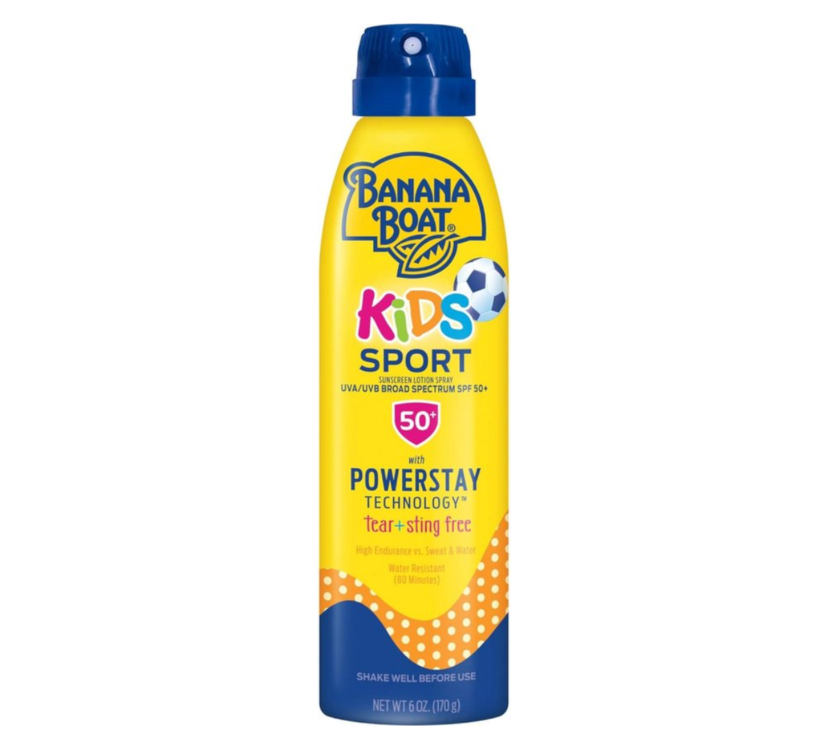 Banana Boat kids zonnebrand clear spray met SPF 50. Ontwikkeld voor actieve kinderen en eenvoudig aan te brengen tijdens buitenspelen.
