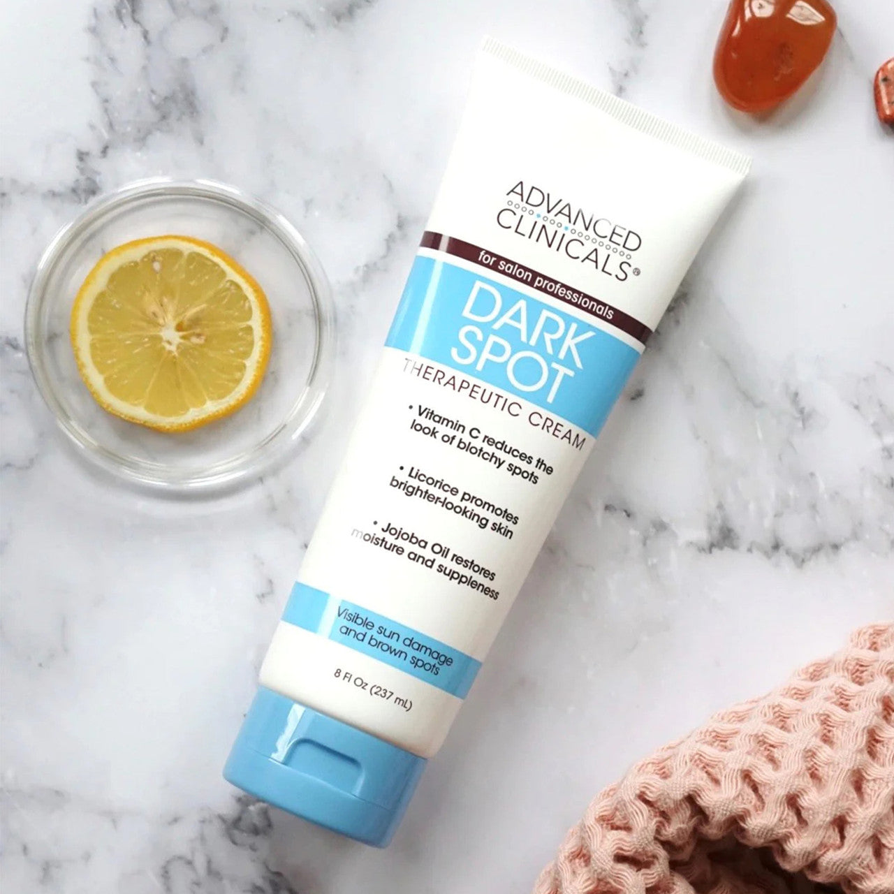 Advanced Clinicals Dark Spot Correcting Cream helpt pigmentvlekken en verkleuringen zichtbaar te verminderen voor een egalere en stralendere huid. De formule werkt effectief om donkere plekken te vervagen, terwijl het de huid hydrateert en beschermt. Geschikt voor dagelijks gebruik op gezicht en lichaam.