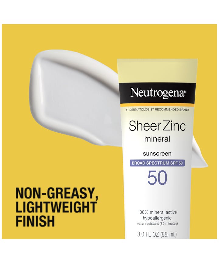 Neutrogena Sheer Zinc Oxide Dry-Touch Face Sunscreen SPF 50 – Minerale Zonnebrand – Normale tot Gevoelige Huid – 88 ml