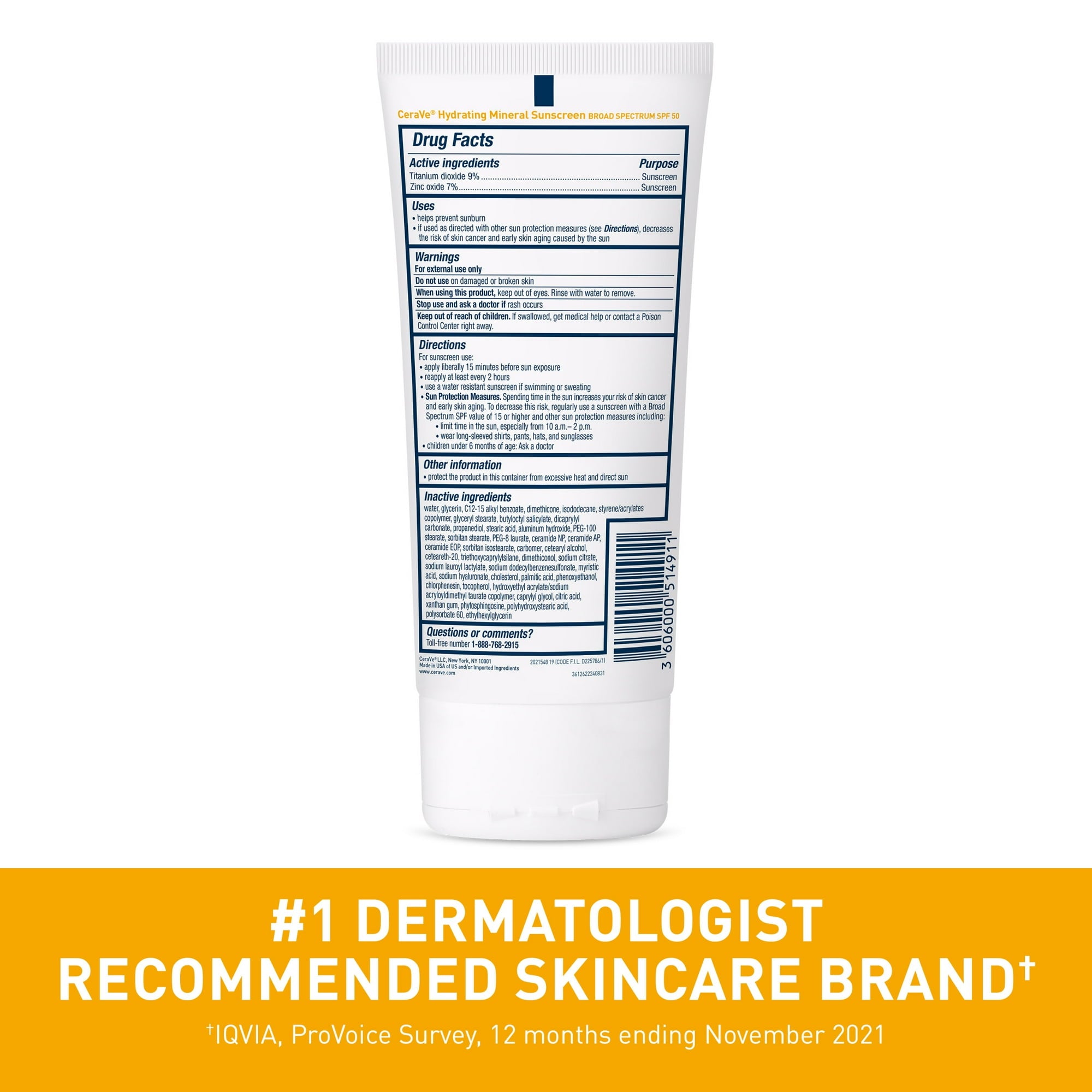 CeraVe Hydrating Mineral Sunscreen Body Lotion met breedspectrum SPF 50 is een 100% minerale zonnebrandcrème met titaniumdioxide en zinkoxide. Deze formule vormt een beschermende barrière op de huid om UVA- en UVB-stralen te reflecteren, zonder de gevoelige huid te irriteren.