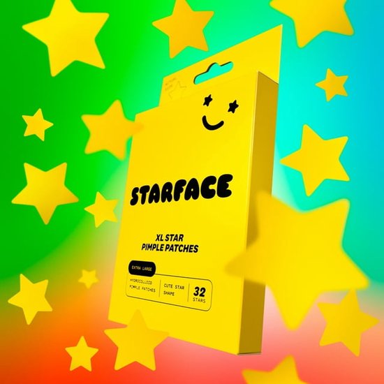 Starface XL Stars - Een verpakking met 32 hydrocolloïde pleisterbeschermers in een XL-formaat voor puistjesbestrijding. Deze 20 mm brede sterren zijn perfect voor het behandelen van grotere puistjes. Hydrocolloïde is klinisch bewezen om vocht op te nemen en ontstekingen te verminderen om puistjes 's nachts te laten krimpen. Perfect gevormd om zich aan te passen aan de contouren van het gezicht, zijn Hydro-Stars ontworpen om echt te blijven plakken: ze beschermen puistjes tegen externe bacteriën, wat helpt om ze sneller te laten genezen. Hydro-Stars helpen ook littekens te voorkomen - zie ze als een zachte herinnering om niet aan je huid te plukken.
