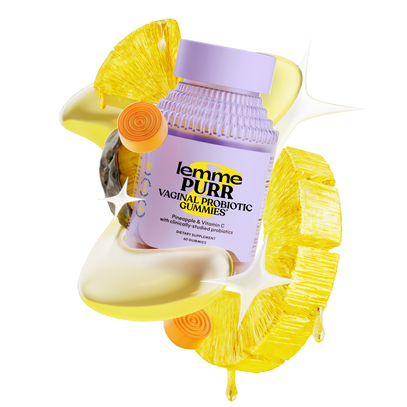 Lemme Purr Vaginal Probiotic Gummies ondersteunen de vaginale gezondheid en helpen het pH-niveau in balans te houden. Verrijkt met de klinisch onderzochte SNZ 1969™ probiotica, vitamine C en ananasextract, bevorderen deze veganistische, glutenvrije en niet-GMO gummies een frisse, gezonde balans. Ze zijn vrij van kunstmatige zoetstoffen en synthetische kleuren, en bieden een natuurlijke bron van smaak en extra voedingsstoffen voor je welzijn.