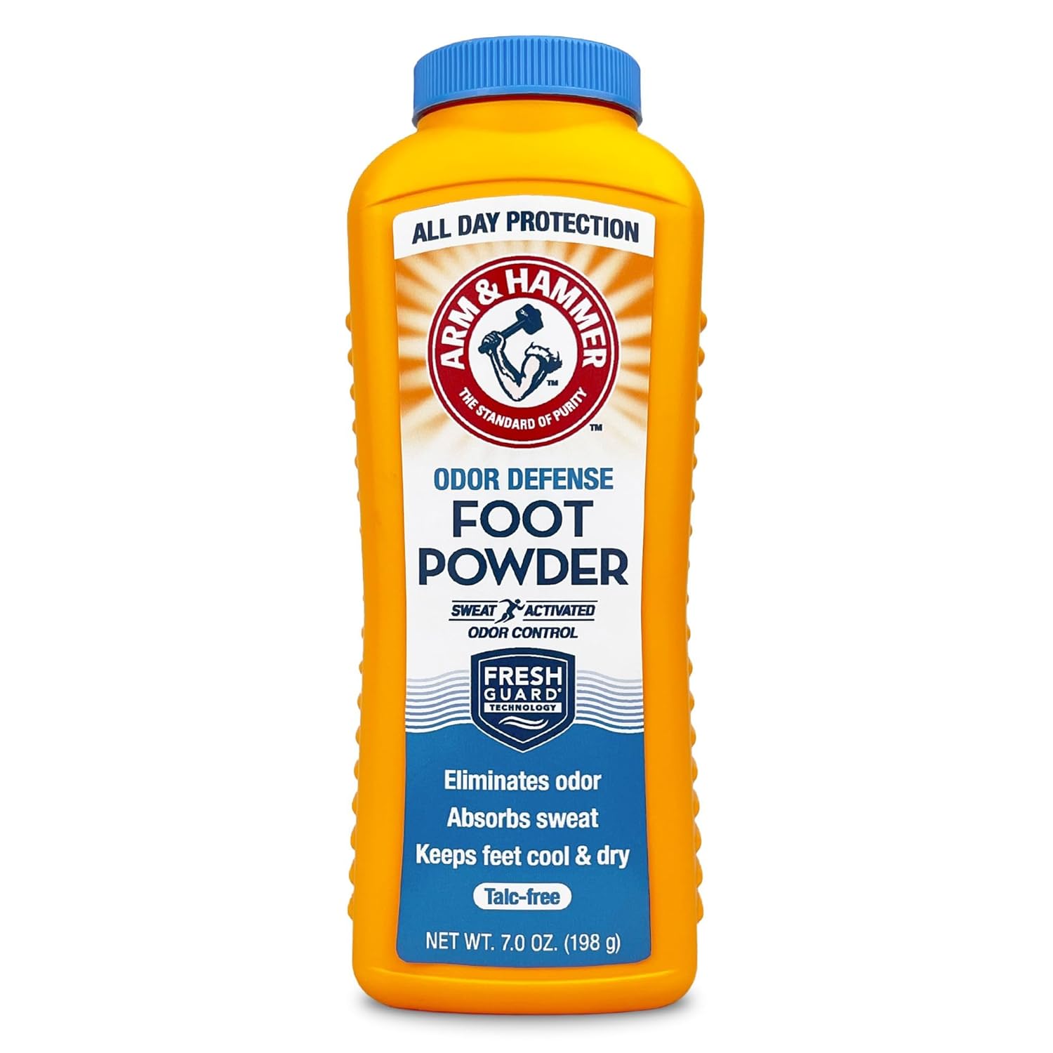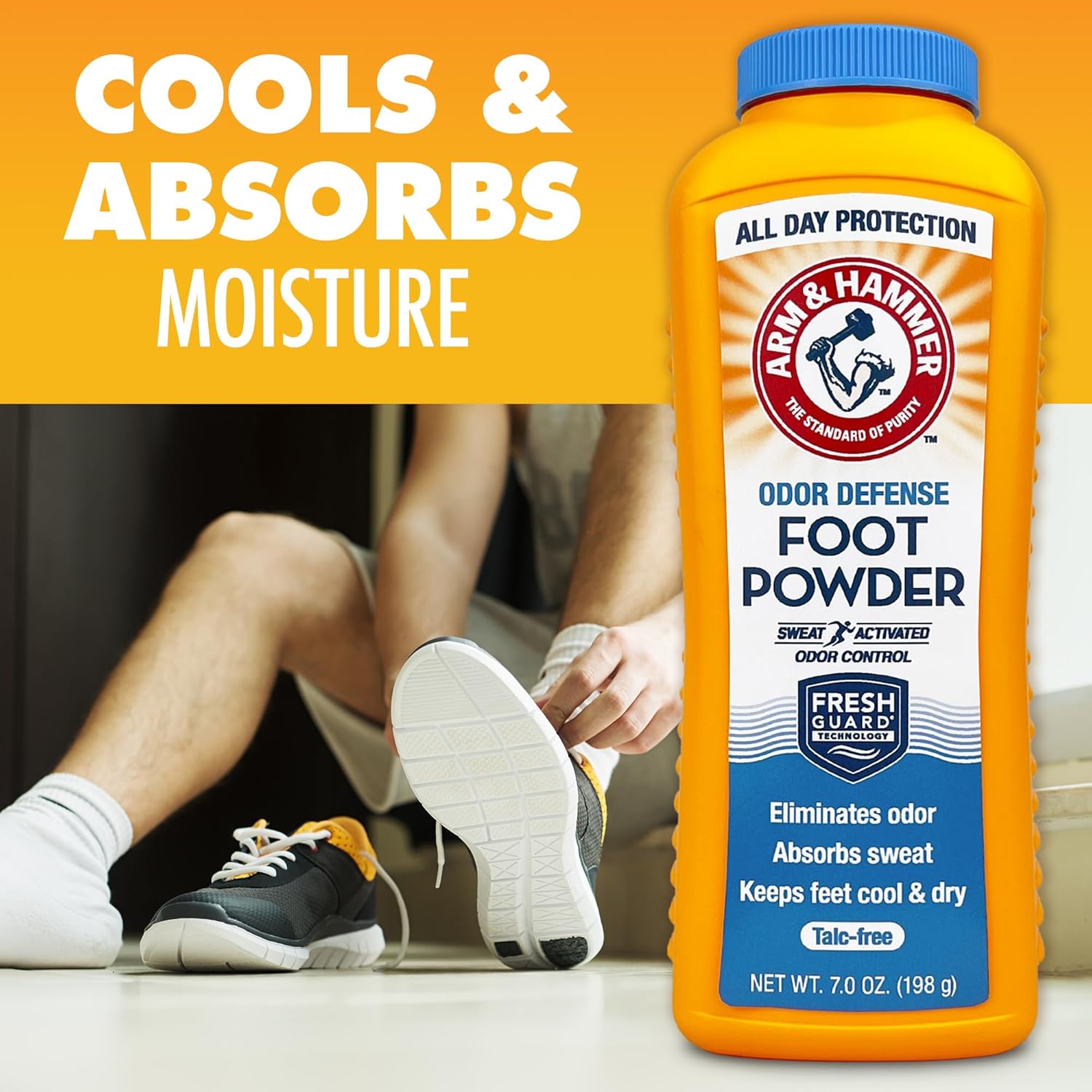 Arm & Hammer Talcvrij Voetpoeder is speciaal ontwikkeld om zweetvoeten tegen te gaan. De formule met natuurlijke baking soda neutraliseert geurtjes, absorbeert vocht en houdt je voeten fris en droog, zonder het gebruik van talk. Ideaal voor dagelijks gebruik, zowel in schoenen als direct op de huid.