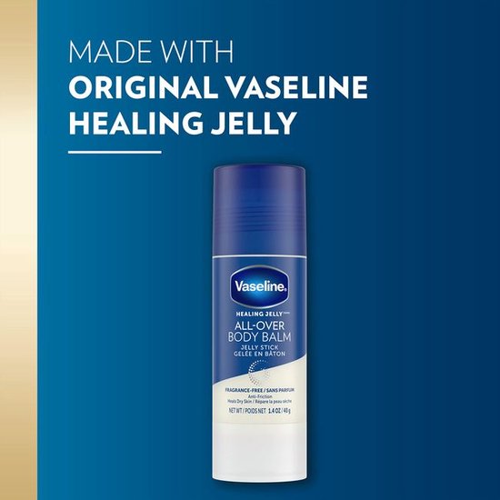 De Vaseline Jelly Stick Balm is een parfumvrije, multifunctionele balsem die droge of geïrriteerde huid effectief verzacht en herstelt. Geschikt voor gebruik op lichaam, gezicht en lippen. De handige stickvorm maakt het ideaal voor onderweg en voor gerichte hydratatie zonder rommel. Veilig voor de gevoelige huid en dagelijks gebruik.