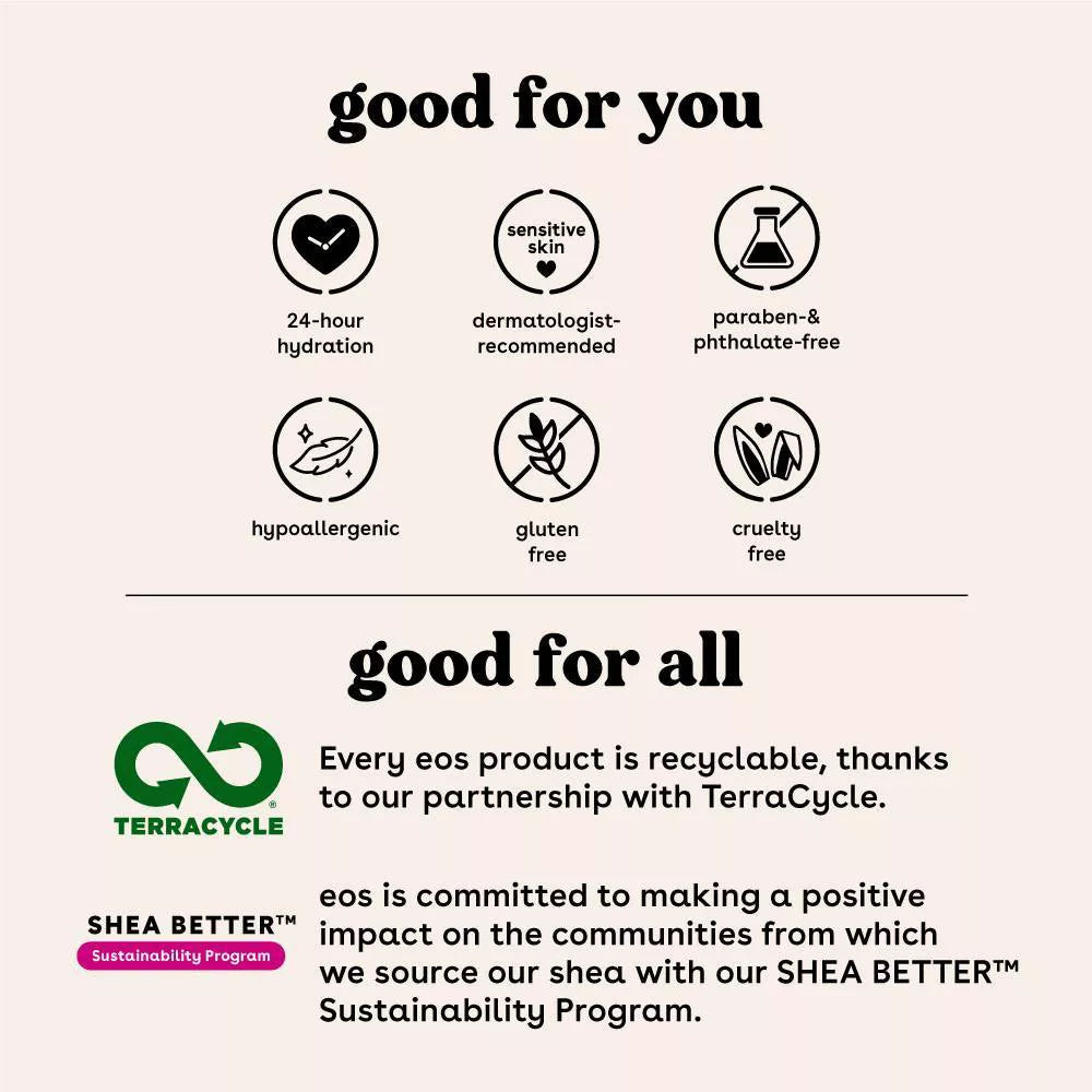 Ontdek een lippenbalsem die natuurlijk en heerlijk is. Onze Natural Shea lipbalsem, dermatologisch aanbevolen, is speciaal ontwikkeld voor de gevoelige huid en bevat kalmerende sheaboter, lichte kokosolie en beschermende antioxidanten. eos lippenbalsems gebruiken duurzaam verkregen ingrediënten die de hele dag door vocht bieden en zorgen ervoor dat je lippen zijdezacht, gehydrateerd en de hele dag een heerlijke smaak behouden.