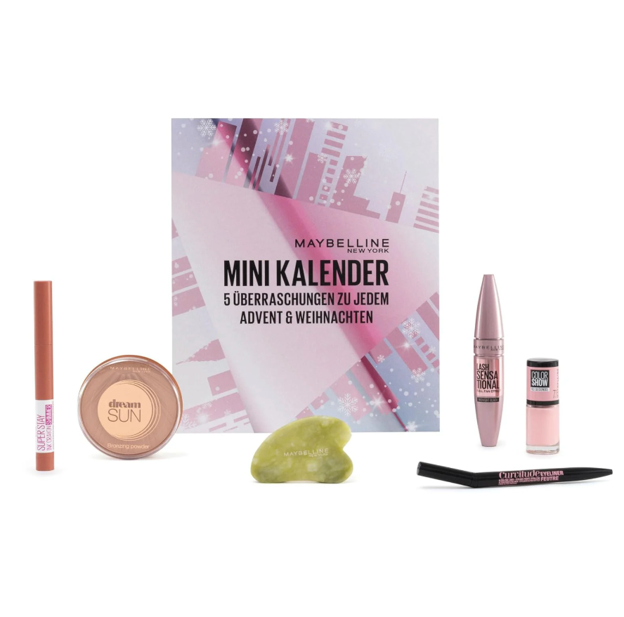 Elke advent een verrassing met de Mini Adventskalender van Maybelline New York! Deze kalender bevat vijf make-up producten in full size, perfect om jezelf elke dag tot Kerstmis te verwennen. Het handige formaat maakt de kalender niet alleen ideaal voor persoonlijk gebruik, maar ook een perfect cadeau. Gemaakt van FSC-gecertificeerd karton, is hij bovendien milieuvriendelijk.