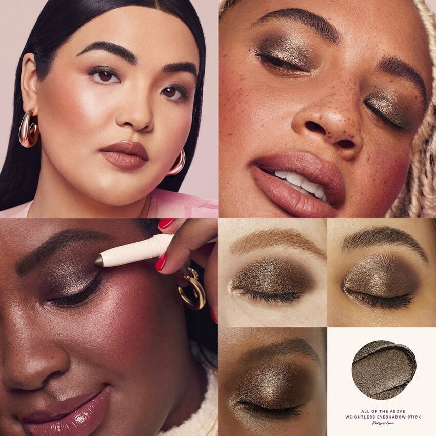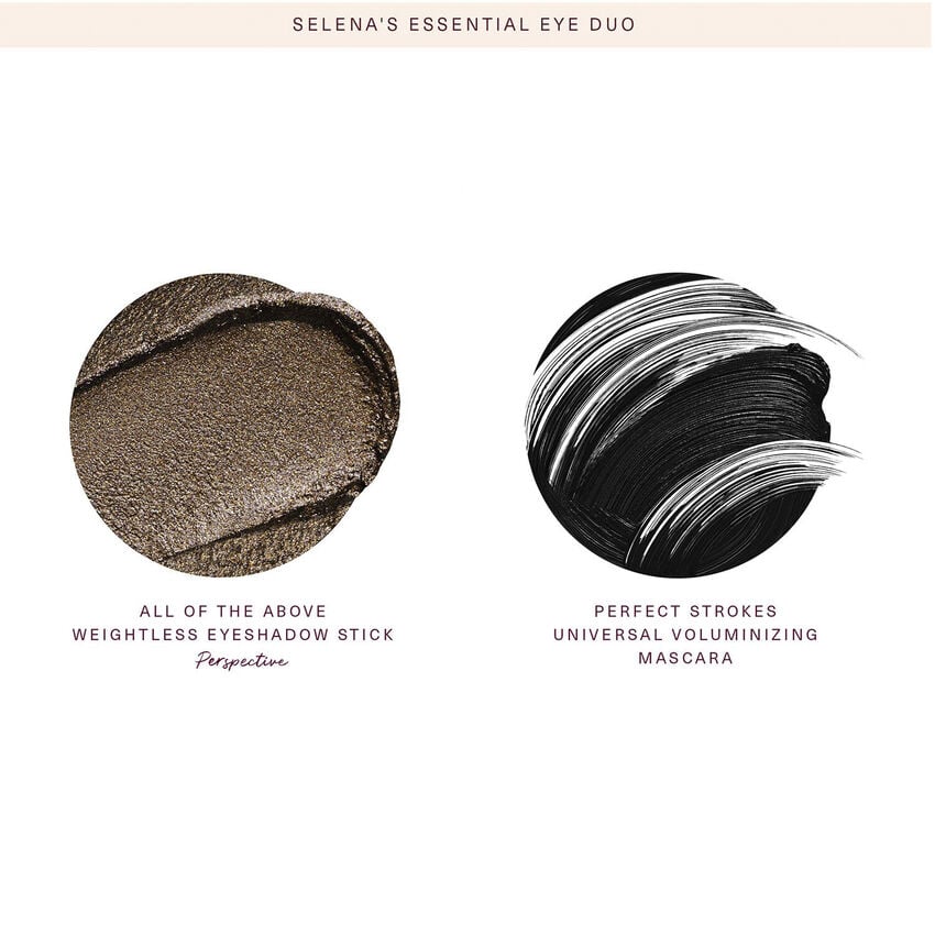 Een set van Selena's nieuwste favorieten voor het creëren van een klassieke smokey eye, met een full-size All of the Above Weightless Eyeshadow Stick in de set-exclusieve tint Perspective (diep gouden olijf), en een mini Perfect Strokes Universal Volumizing Mascara in zwart.