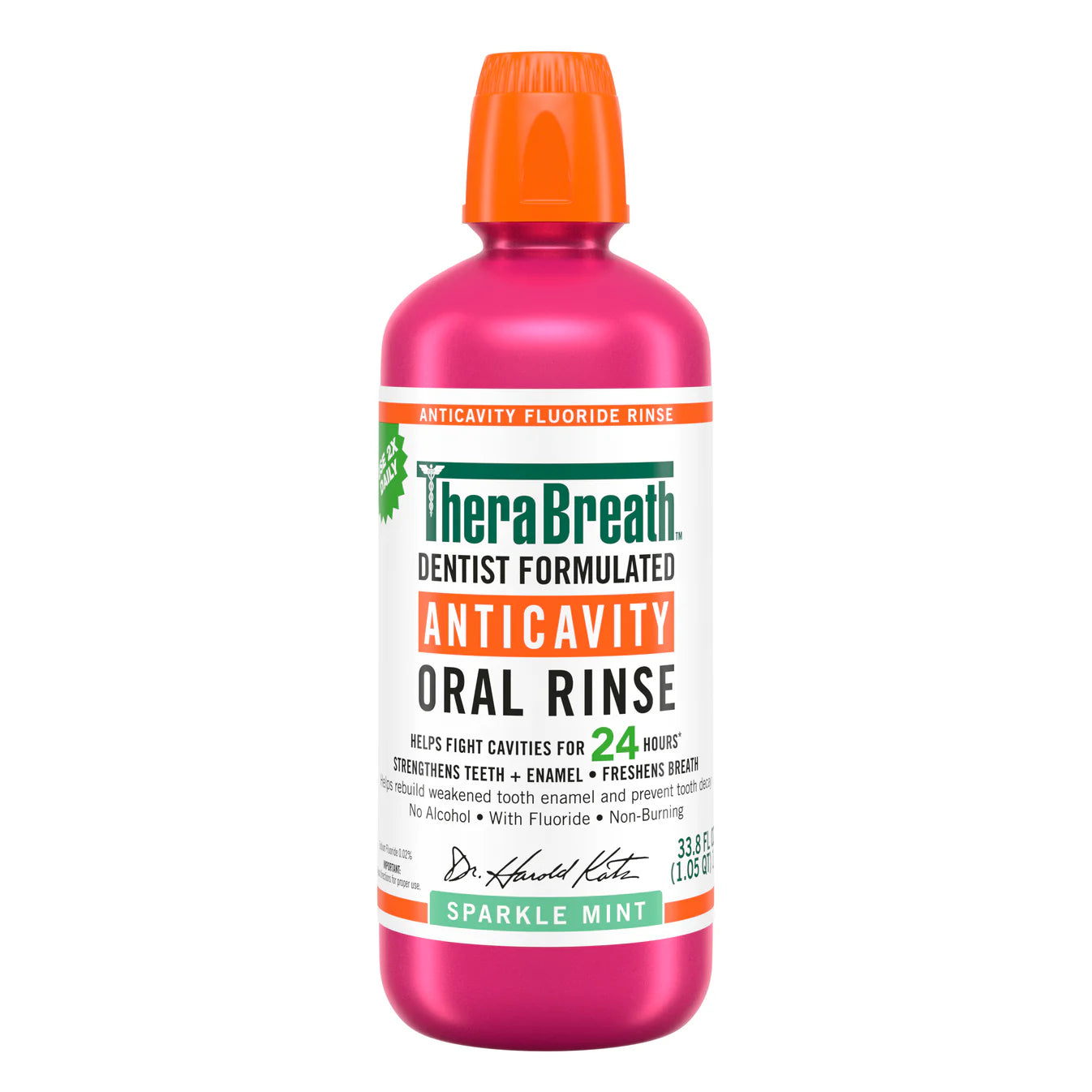 TheraBreath Anticavity Fluoride Mouthwash in de smaak Sparkle Mint is een verfrissende mondspoeling die helpt gaatjes te voorkomen en het tandglazuur versterkt. De fluorideformule bestrijdt bacteriën die gaatjes veroorzaken, terwijl de frisse muntsmaak zorgt voor een langdurig schoon gevoel. Alcoholvrij en mild voor dagelijks gebruik.
