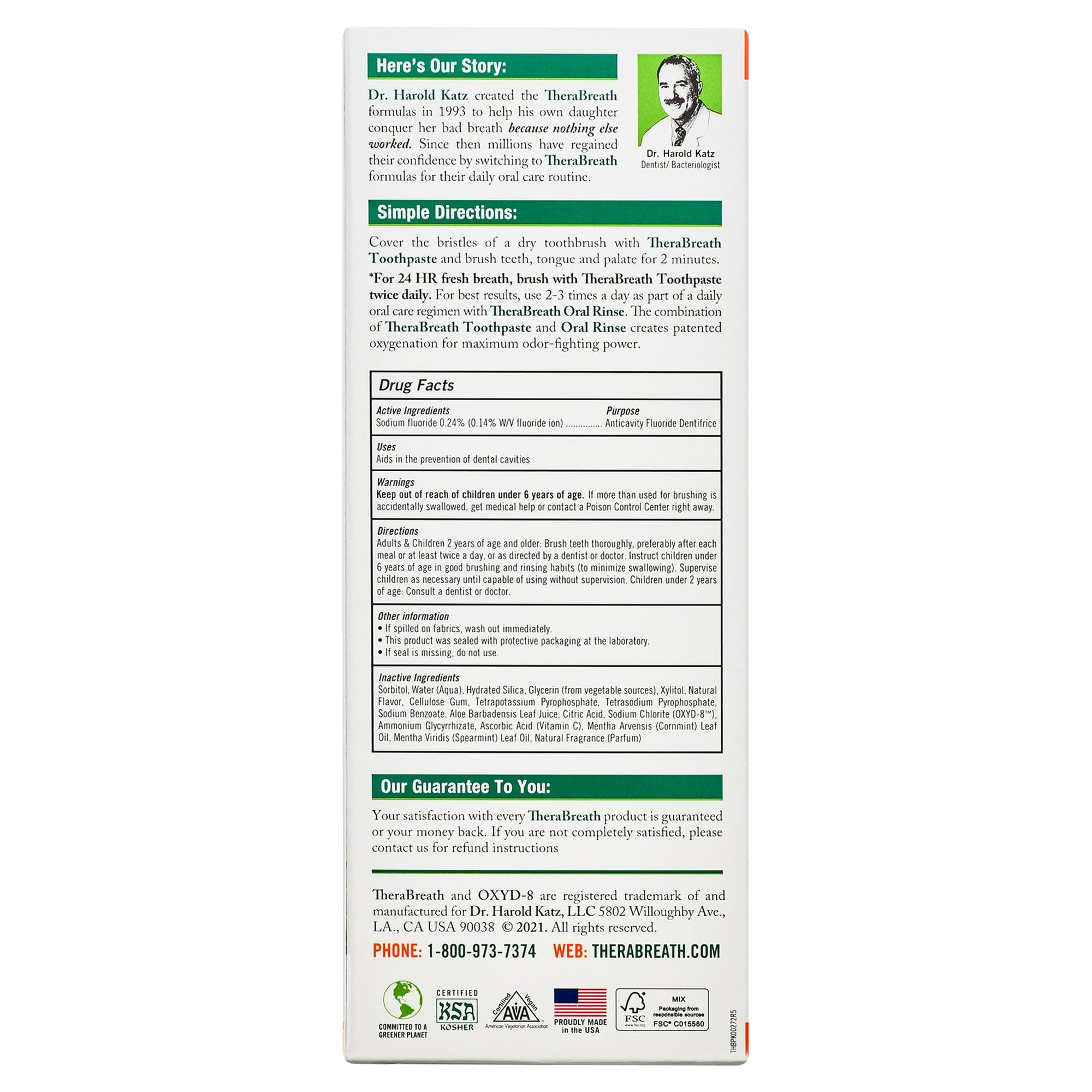 TheraBreath Tandpasta bestrijdt slechte adem en helpt tandbederf te voorkomen met fluoride en krachtige zuurstof. Het is tandarts aanbevolen, zonder agressieve stoffen, triclosan of kunstmatige smaken. Deze premium tandpasta is onderdeel van een professionele mondverzorgingslijn die ook mondwaters, ademverfrissers en meer biedt. Sinds 1994 biedt TheraBreath oplossingen voor halitosis, gaatjes en tandvleesproblemen.