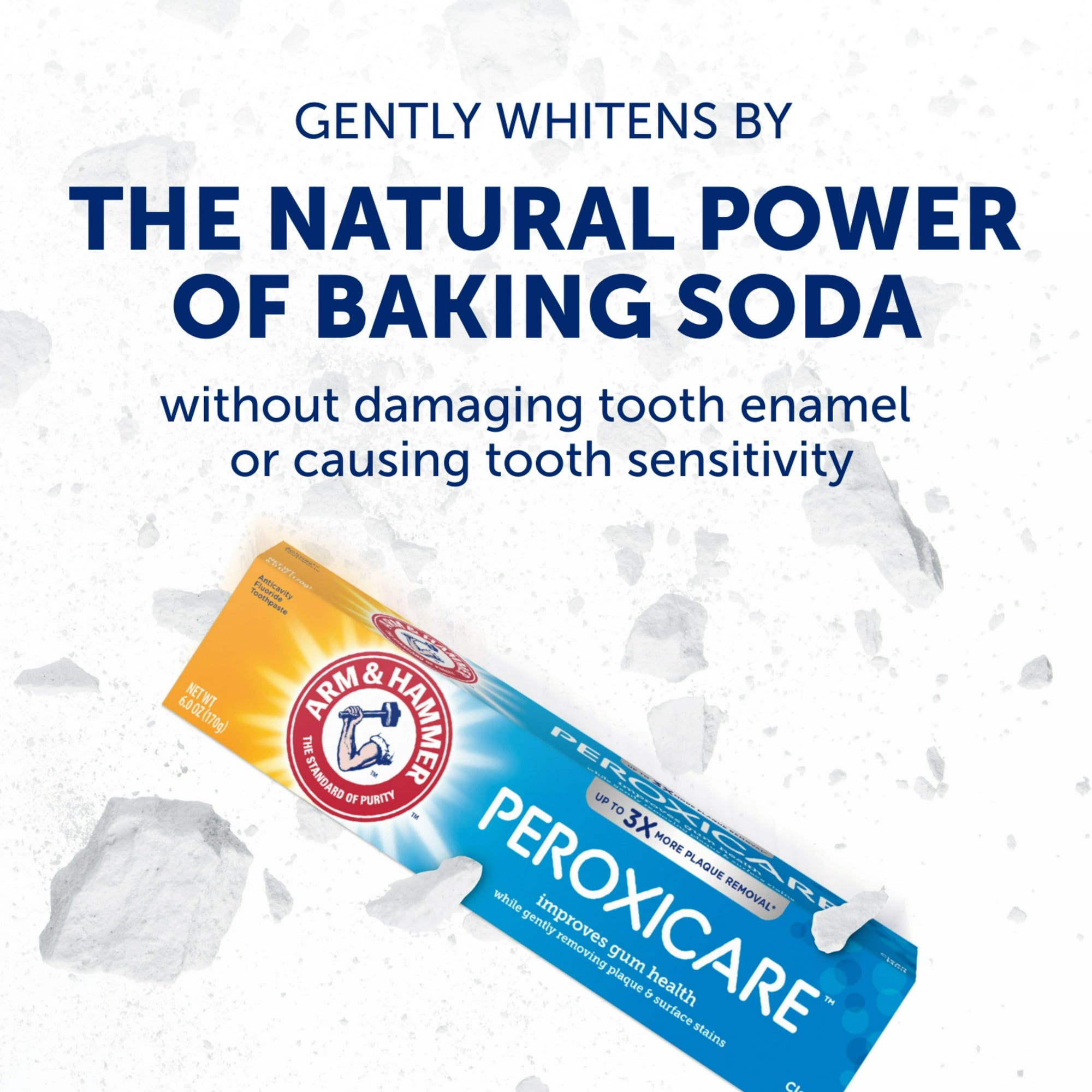 Arm & Hammer Peroxicare Clean Mint Tandpasta combineert de kracht van baking soda en peroxide voor een diepe, actieve reiniging van tanden én tandvlees. De fluoride beschermt tegen gaatjes, terwijl de frisse Clean Mint smaak je adem langdurig verfrist. Voor een gezond gebit en een fris mondgevoel, elke dag.