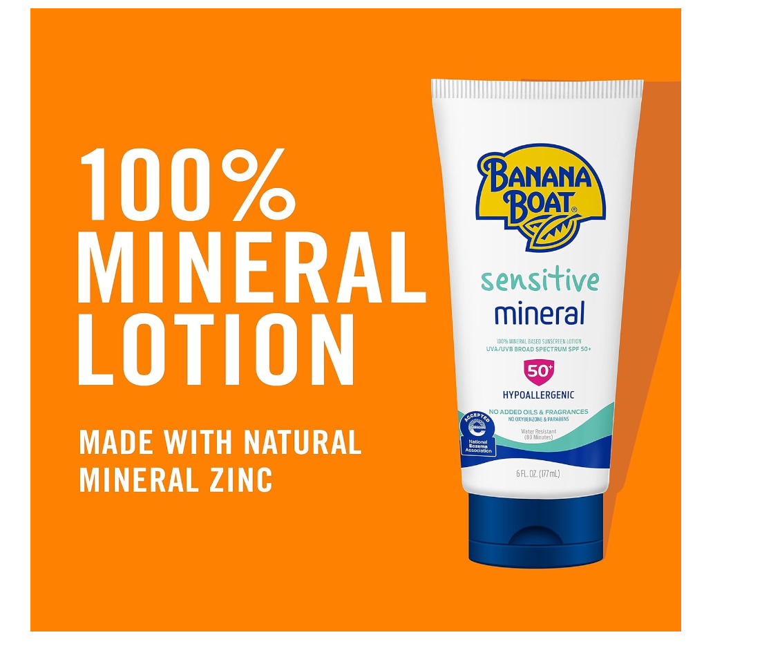 Banana Boat Sensitive 100% Mineral Lotion - Vrij van parfum - Hypoallergeen - SPF 50+