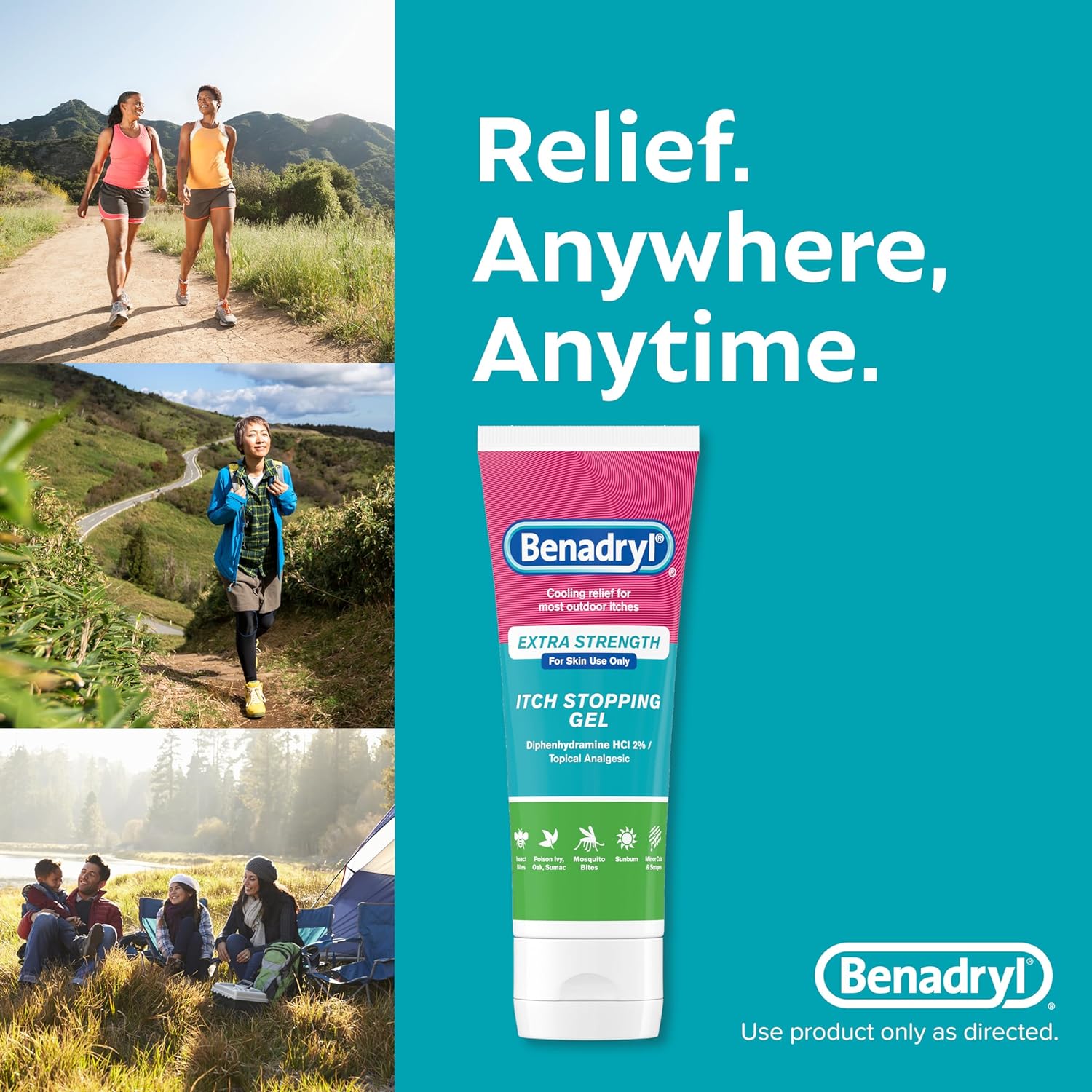 Benadryl Extra Strength - 2% Diphenhydramine HCI - Itch Stopping Gel - Jeuk crème - Tegen buitenshuis jeuk - Tegen Insectenbeten - brandwonden - Huidirritaties Kleine snijwonden schaafwonden - Huiduitslag