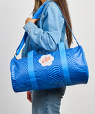 Bubble Skincare blue duffel bag. Praktische tas voor het opbergen en meenemen van skincare en persoonlijke verzorgingsproducten.